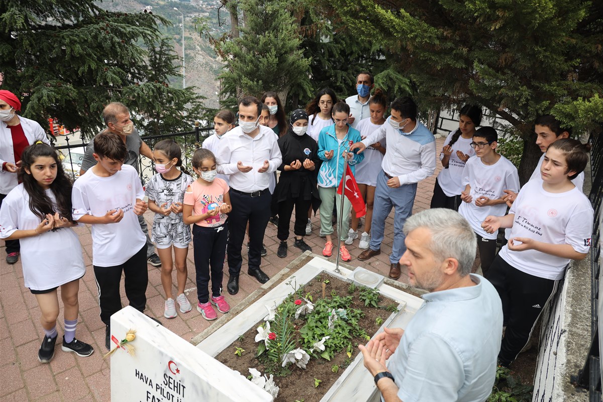 Koşu yarışı sonrasında sporcularımız ve aileleri ile birlikte Garnizon Şehitliğimizi ziyaret ederek 15 Temmuz hain darbe girişimi gecesinde canlarını feda eden Kahraman Şehitlerimize ve tüm Şehitlerimize dua ettik.